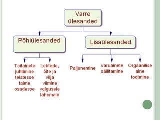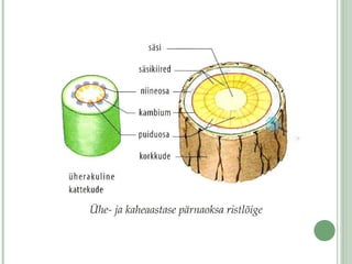 TÕUSEV JA LASKUVVOOL Lehtede arenemiseks vajalik vesi ja selles lahustunud ained liiguvad ülespoole mööda puiduosa . See on tõusev vool . Juurte arenemiseks vajalik orgaaniline aine tuleb lehtedest niineosa sõeltorude kaudu. See on laskuv vool .