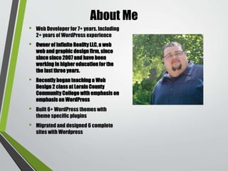 The document outlines the use of varying Vagrant Vagrants (VVV) for WordPress local development, detailing its advantages such as faster performance and easier debugging. It provides step-by-step instructions for setting up a VVV environment, installing necessary plugins, and utilizing various commands to manage the development setup. Additionally, it highlights the importance of custom dashboards and site creation wizards to enhance the development experience.
