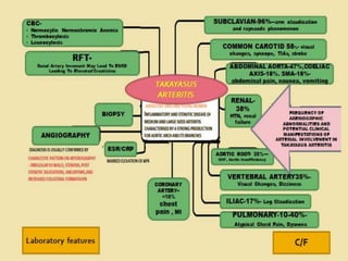 Vasculitis refers to inflammation of blood vessels. This document discusses vasculitis syndromes including definitions, classifications, clinical presentations, diagnostic evaluations, and management. Vasculitides are classified based on the size of vessels predominantly involved as large, medium, or small vessel. Common small vessel vasculitis includes Wegener's granulomatosis and microscopic polyangiitis. Treatment involves immunosuppressants such as cyclophosphamide, steroids, methotrexate, and biologics depending on severity and type of vasculitis. Prompt diagnosis and treatment is important to prevent organ damage from ischemia.
