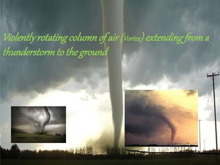 This document summarizes information about tornadoes, including: