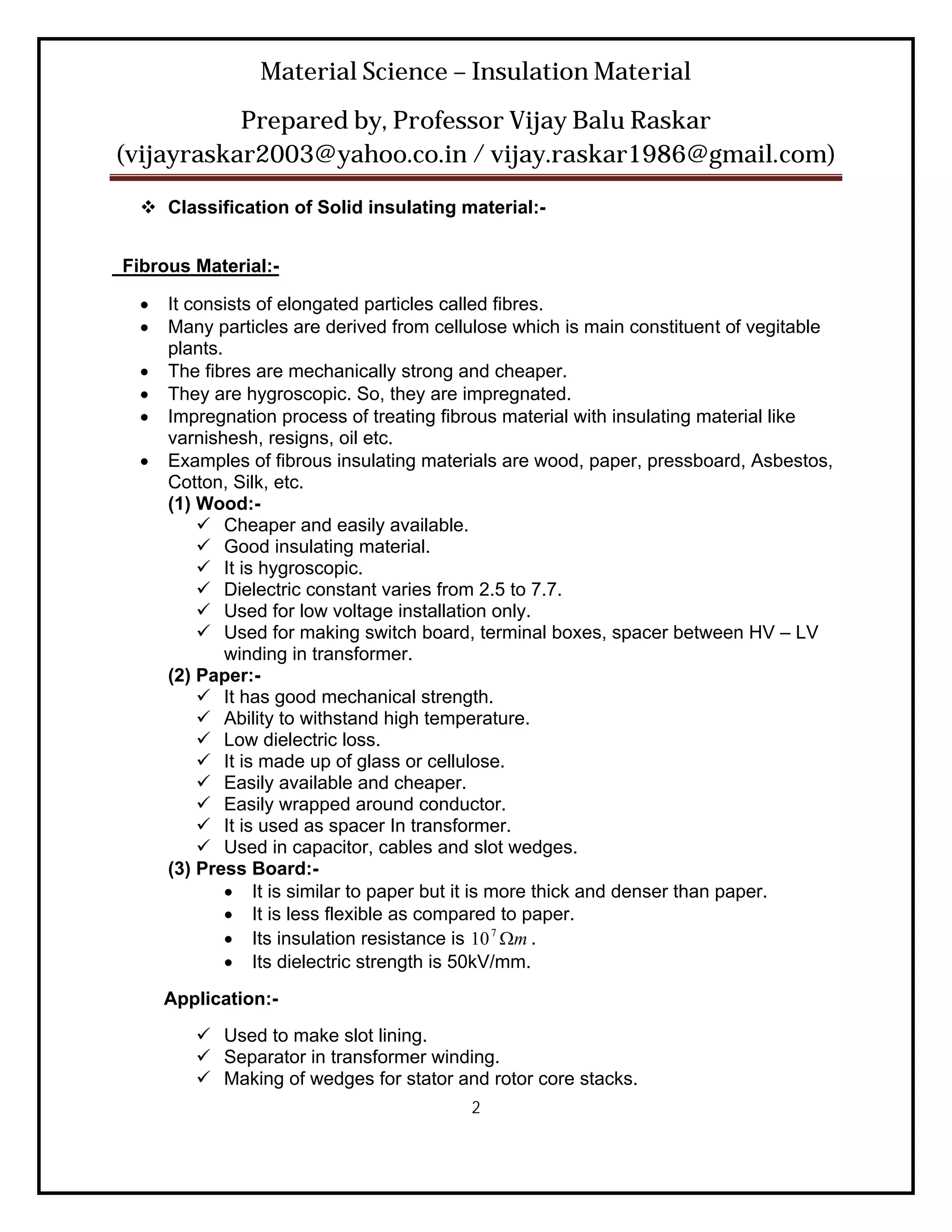 The document discusses various properties and types of materials that make good electrical insulators. It describes fibrous materials like wood, paper and pressboard. It also covers solid insulating materials like ceramics, mica and insulating resins. Ceramic materials discussed include porcelain, steatite, alumina and titanite. The document also provides details on transformer oil and its properties as an insulating material.