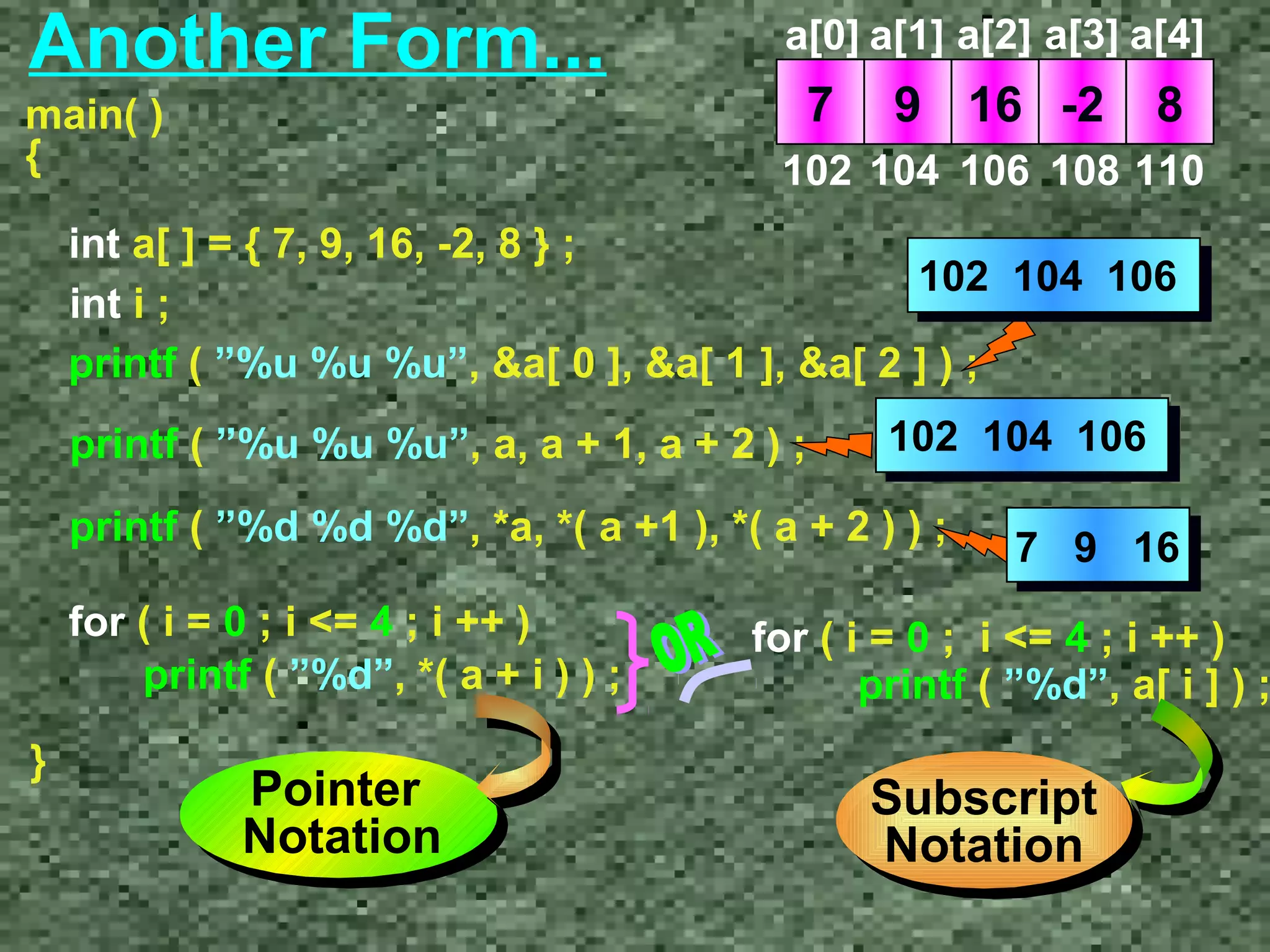 The document discusses various ways to represent and access arrays in C programming using subscript notation, pointer notation, and passing arrays to functions. It covers declaring and initializing single-dimensional and multi-dimensional arrays, as well as legal and illegal operations on arrays like incrementing/decrementing array pointers or changing the base address of an array.