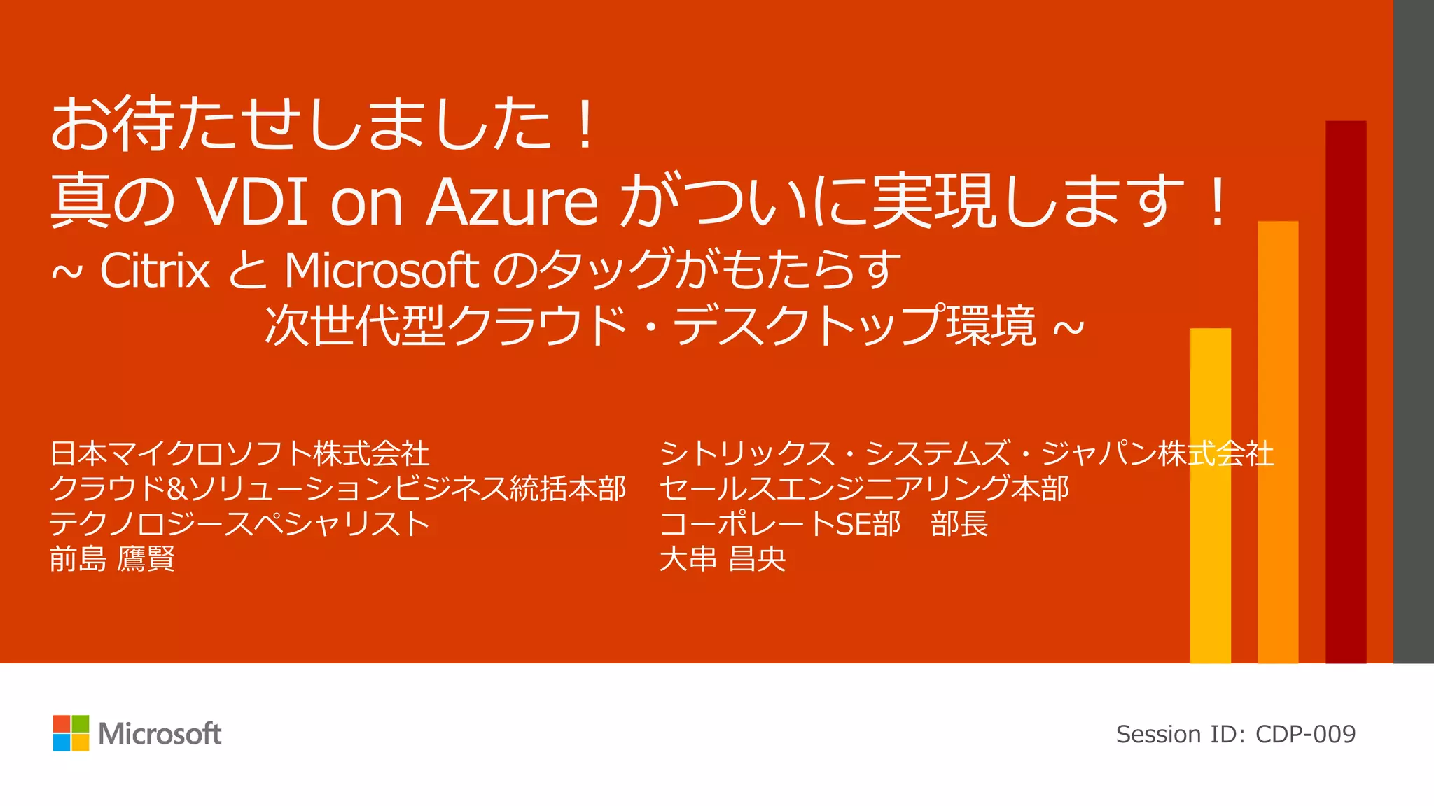 [セッションタイトル] お待たせしました! 真の VDI on Azure がついに実現します!~ Citrix と Microsoft のタッグがもたらす次世代型クラウド・デスクトップ環境 ~