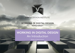 The document introduces a course at the Virtu Design Institute focused on digital design, emphasizing digitizing images and managing photographic assets for creative practices. It discusses the broad field of digital design, which includes various skills such as web design, digital imaging, and animation, along with the use of photomedia for visual art. The course aims to enhance students' technical skills and creative expression through projects and explorations in contemporary digital design.