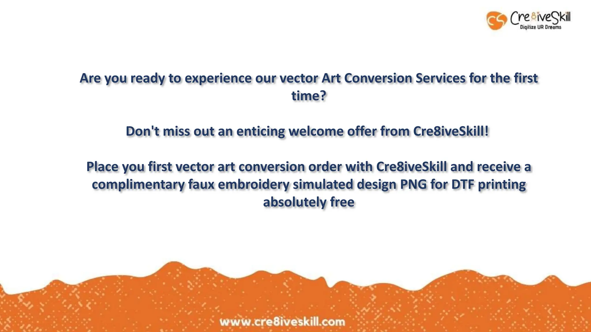 Cre8iveskill is offering a welcome deal for first-time users of their vector art conversion services, which includes a complimentary faux embroidery simulated design for DTF printing. The company emphasizes high-quality, precise vector art conversion without distortion, using advanced software and providing support for various file formats. Clients can benefit from flexible pricing, bulk discounts, and 24/7 customer service while transforming their artwork for enhanced vibrancy and texture.