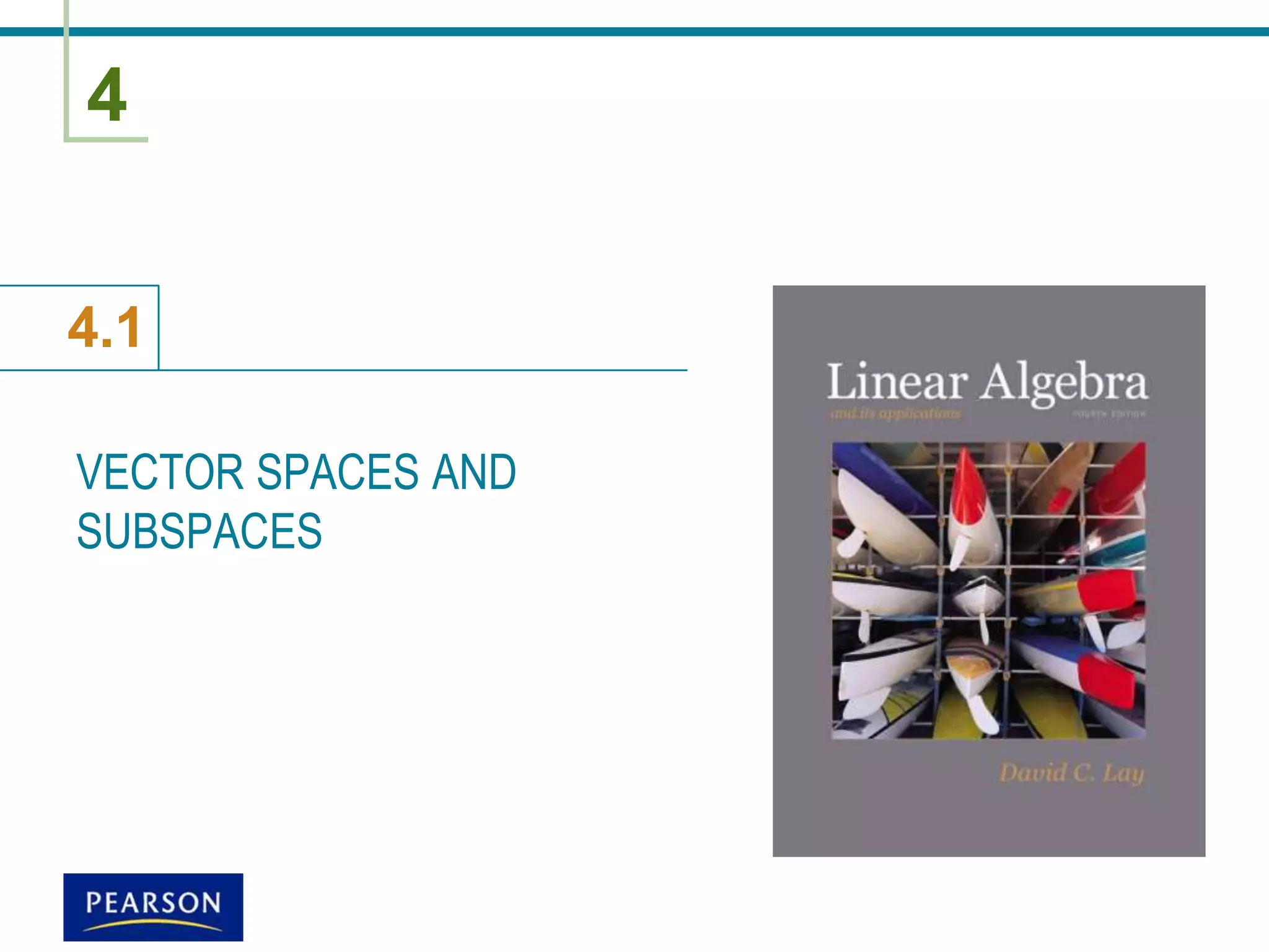 This document provides information about vector spaces and subspaces. It defines a vector space as a set of objects called vectors that can be added together and multiplied by scalars, subject to certain rules. A subspace is a subset of a vector space that is closed under vector addition and scalar multiplication. The null space of a matrix is the set of solutions to the homogeneous equation Ax=0 and is a subspace. The column space of a matrix is the set of all linear combinations of its columns and is also a subspace. Examples are provided to illustrate these concepts.