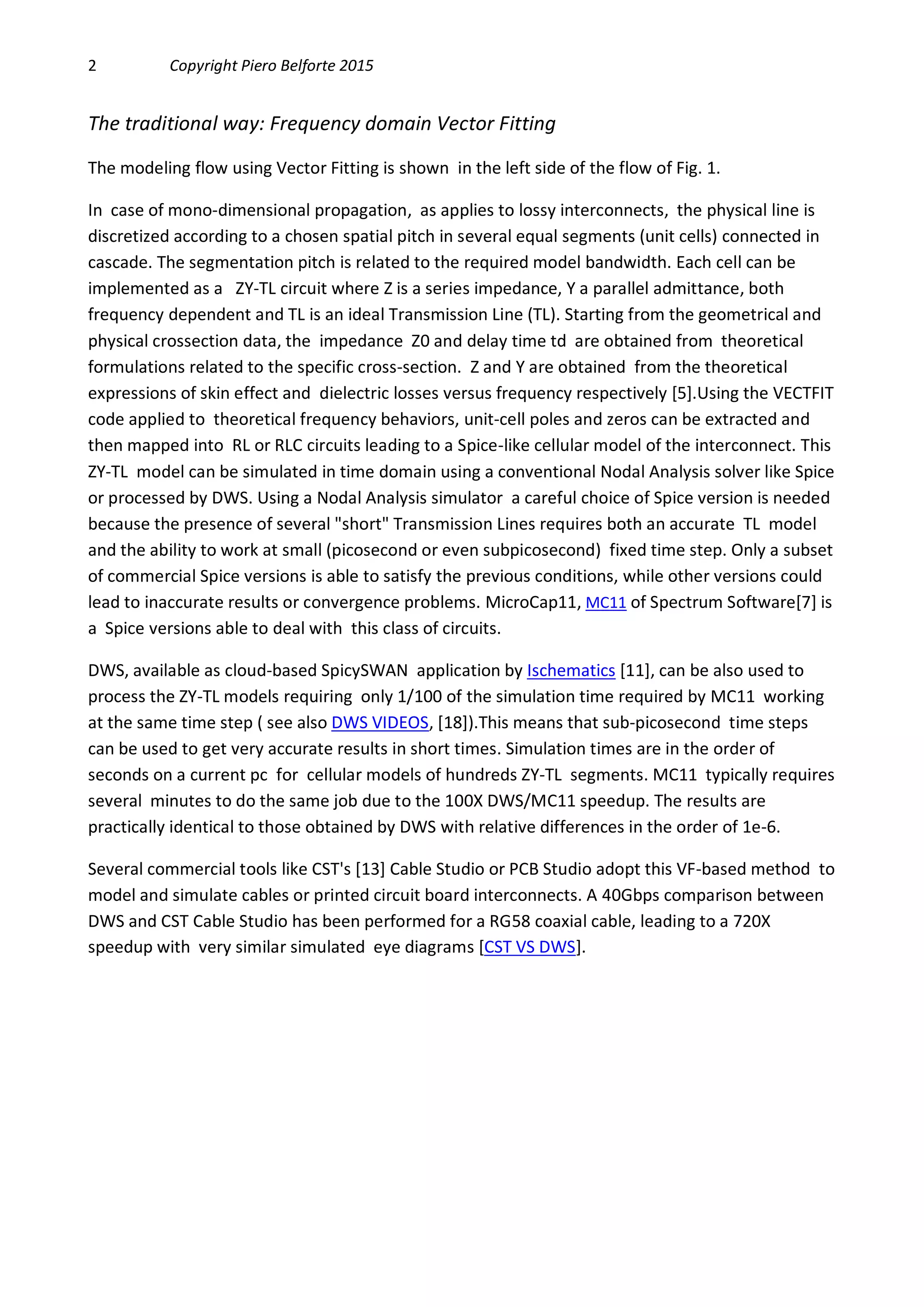 This document discusses two methods for signal and power integrity simulation: vector fitting (VF) and piecewise-linear fitting (PWL). VF approximates complex frequency functions with rational polynomials, while PWL simplifies time-domain S-parameter responses, both suitable for high-speed simulations. The advantages of PWL with digital wave simulation (DWS) include faster processing times and improved stability compared to traditional vector fitting methods.