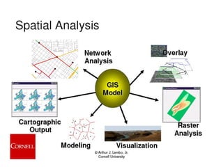 This document provides an overview of a GIS lecture on vector geographic information systems. It discusses key concepts in GIS including components of a GIS, geographic coordinate systems, map projections, vector data models like the spaghetti and topological models, and data capture methods. Recommendations are also made for standard projections and reference systems used by the Food and Agriculture Organization.