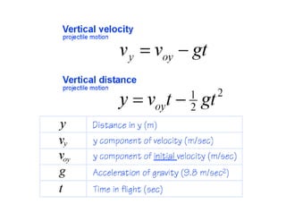 3) Knowing the time of flight and horizontal velocity component allows calculating the horizontal range using the equation x = vot.