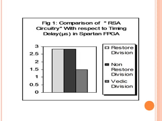 This document discusses the application of Vedic mathematics principles to the design of high-speed arithmetic circuits. It introduces Vedic mathematics, which is based on 16 simple formulae from ancient Hindu scriptures. These formulae can be used to design efficient multiplier and divider architectures. The document presents the implementation of a 16x16 bit Vedic multiplier based on the Urdhva Tiryagbhyam formula. It also discusses square and cube architectures designed using the Duplex property and Anurupya Sutra respectively. The Vedic algorithms allow for faster circuits compared to traditional designs. RSA encryption circuits implemented using the Vedic multiplier and divider show improved performance and timing delays.
