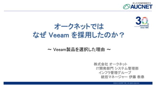 All rights reserved オークネットでは なぜ Veeam を採用したのか? ~ Veeam製品を選択した理由 ~ 株式会社 オークネット IT開発部門 システム管理部 インフラ管理グループ 統括マネージャー 伊藤 教泰