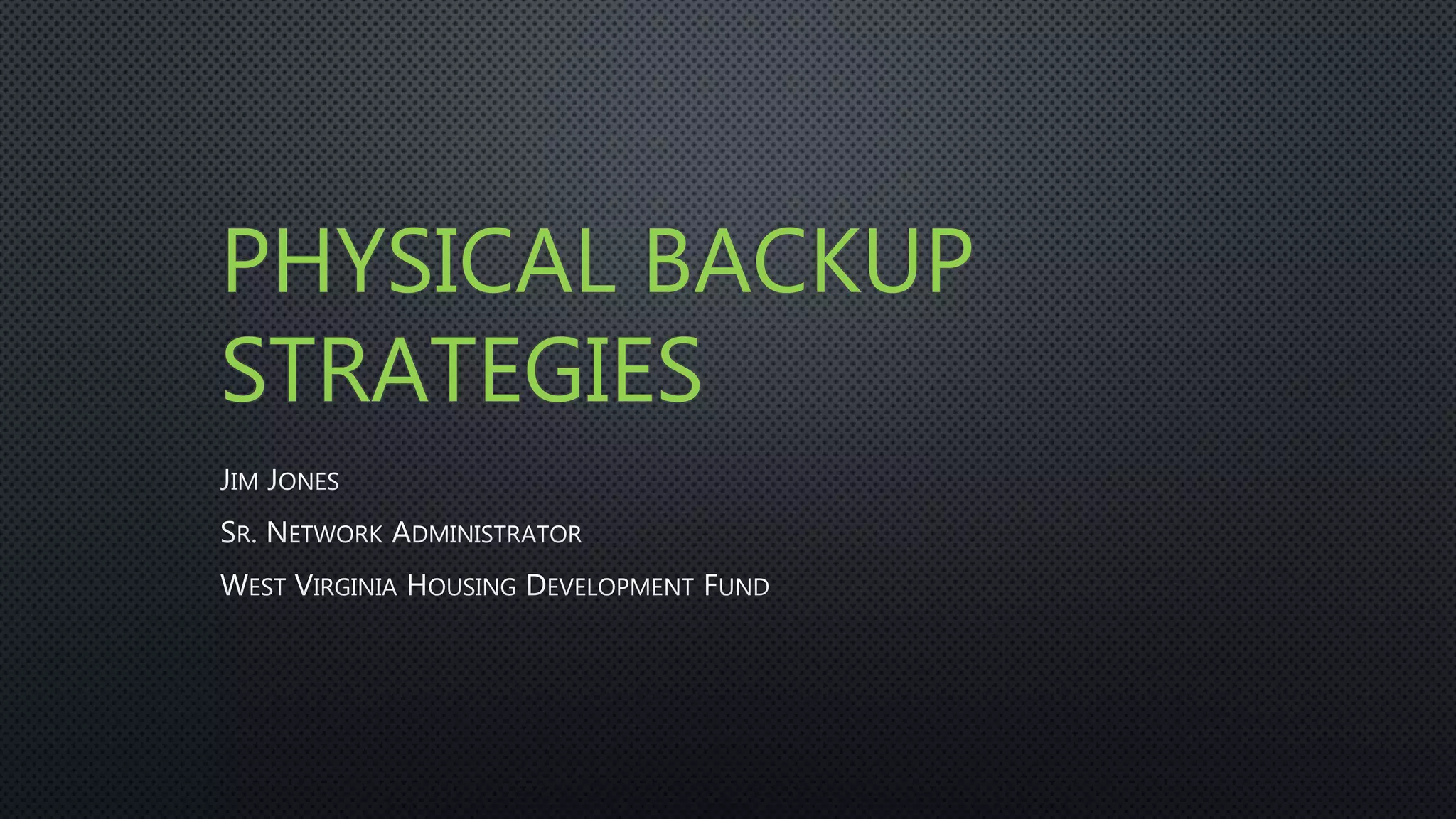 VeeamON 2014 vBrownbag: Physical Server Backup Strategies