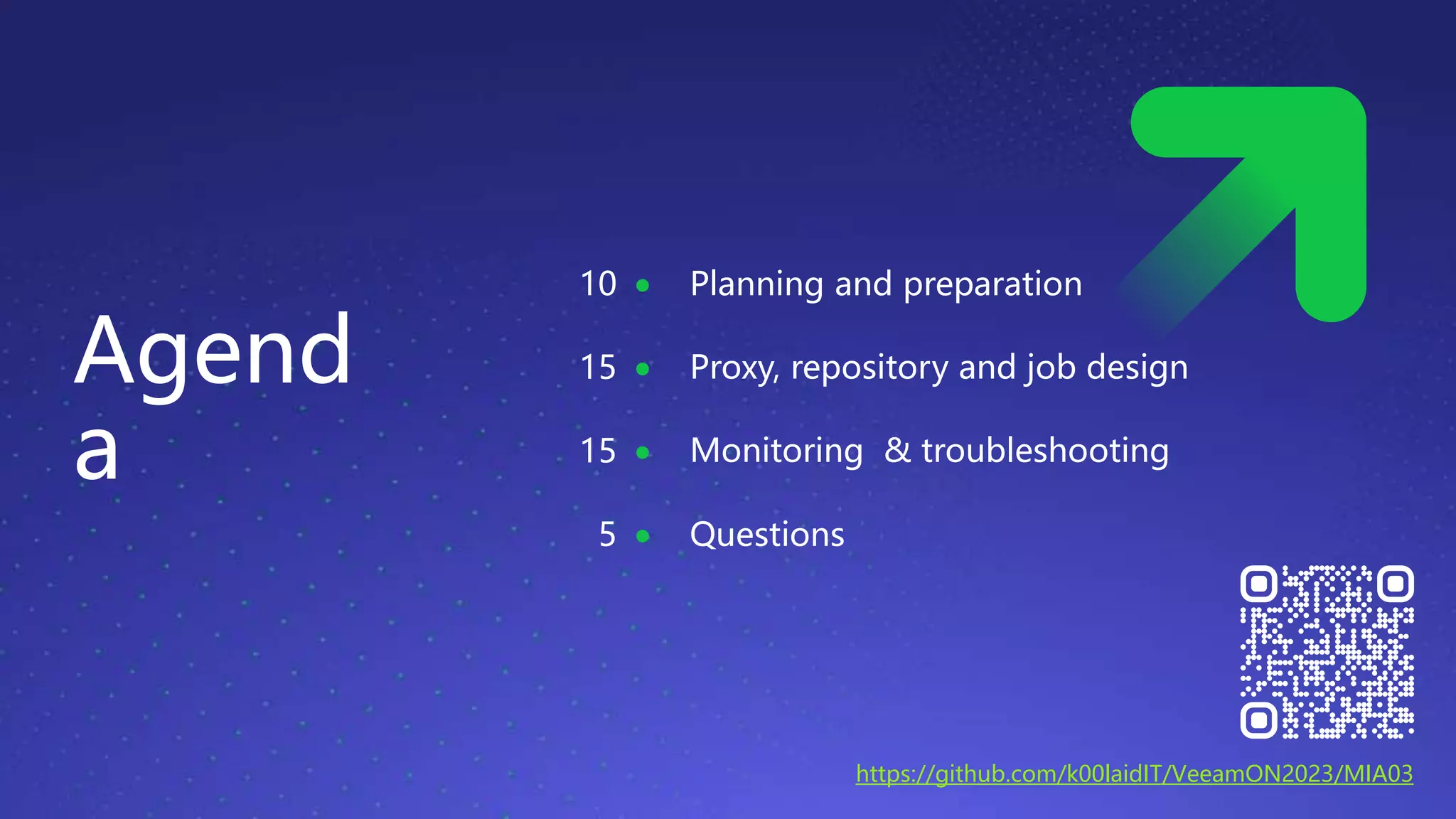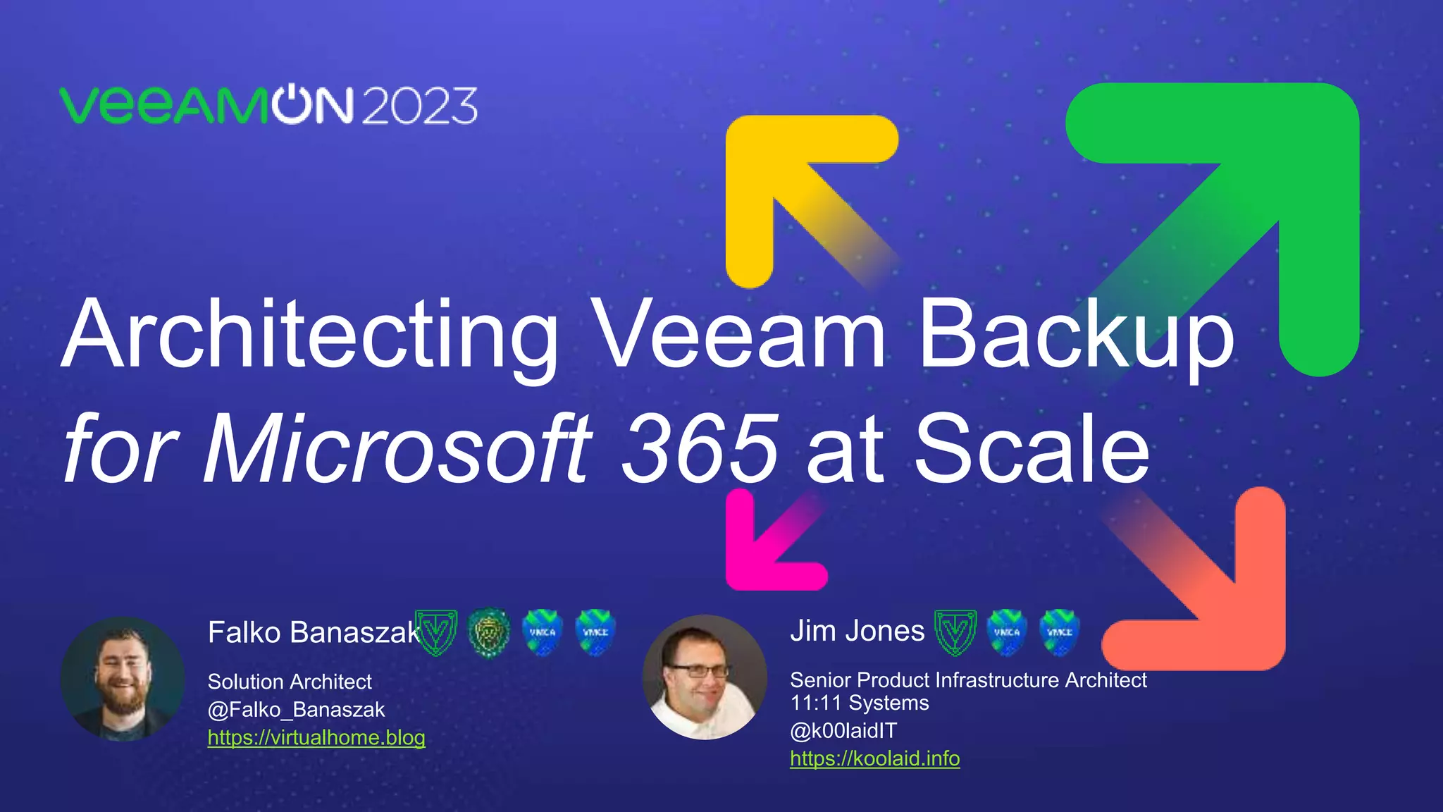 The document outlines best practices for architecting Veeam Backup for Microsoft 365 at scale, focusing on planning, design, monitoring, and troubleshooting. Key considerations include the challenges of managing diverse M365 workloads, optimal proxy and repository design, and retention policies. It emphasizes configuring for scalability and performance, as well as addressing potential throttling and job design issues.