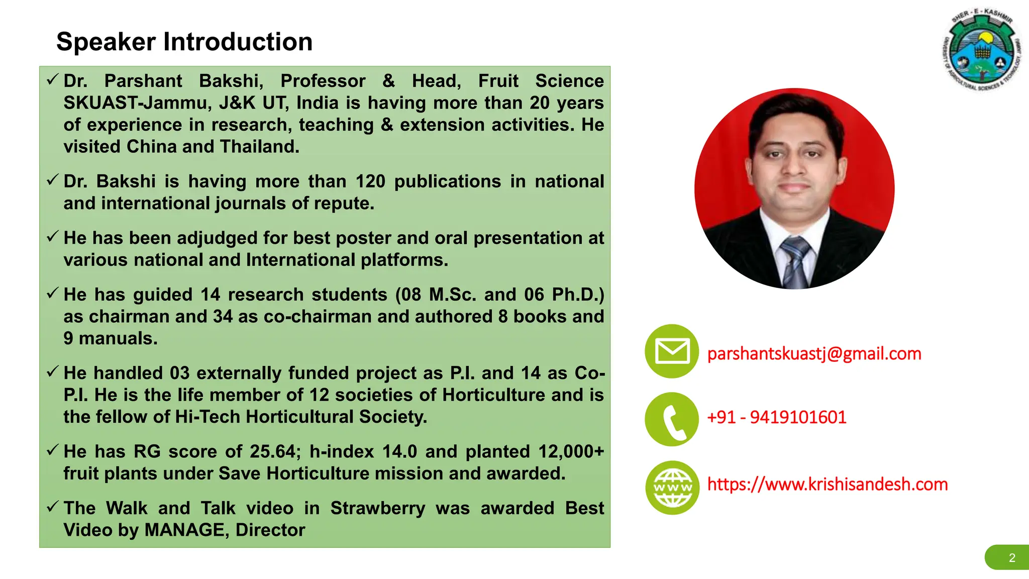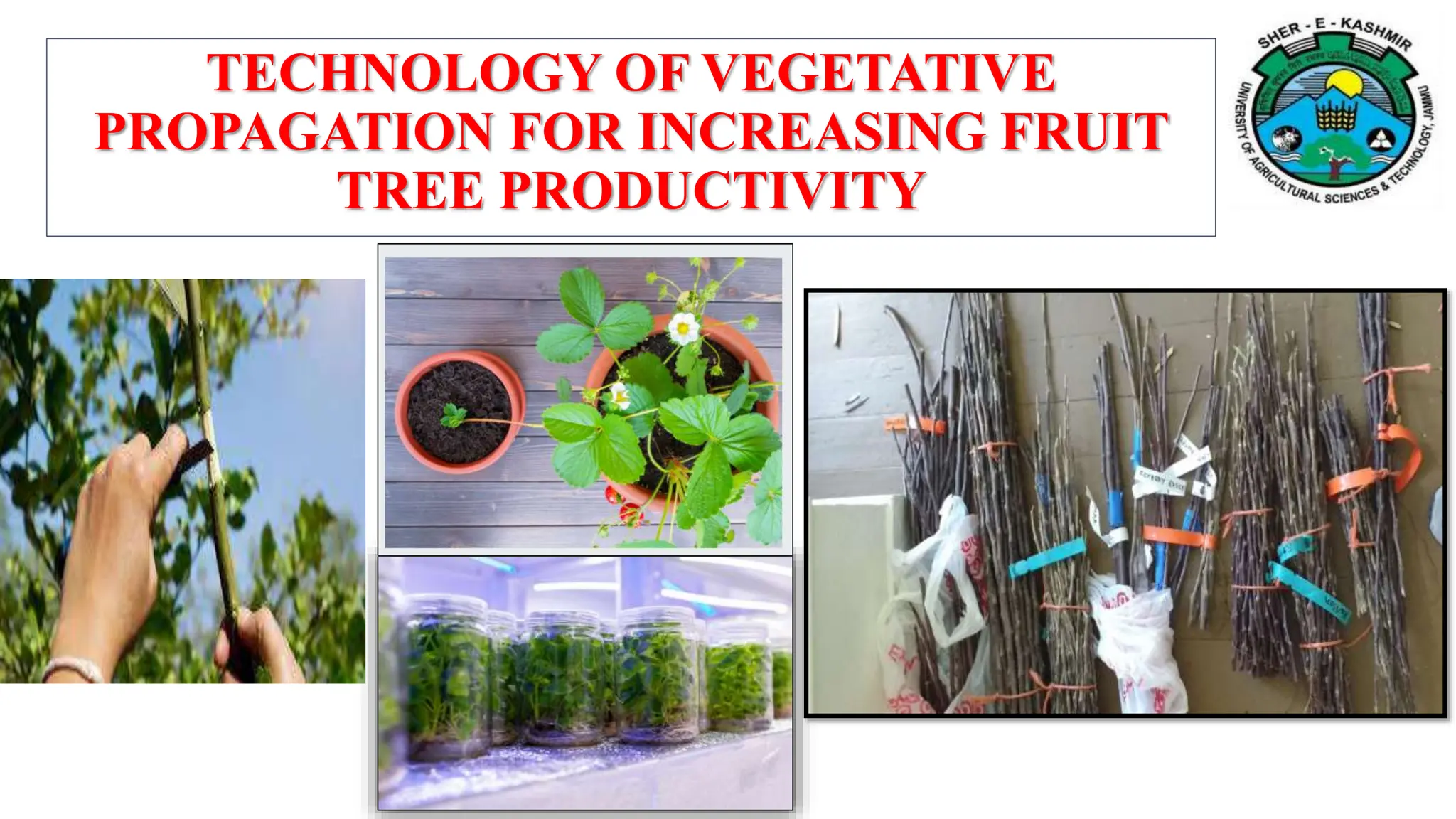 The document discusses the technology of vegetative propagation to enhance fruit tree productivity, presenting various methods such as cuttings, layering, grafting, and tissue culture. It highlights the qualifications and contributions of Dr. Parshant Bakshi, a professor in fruit science, emphasizing his extensive research and achievements in horticulture. Key concepts include the benefits of asexual propagation techniques and advances in grafting methods for creating disease-free plants.