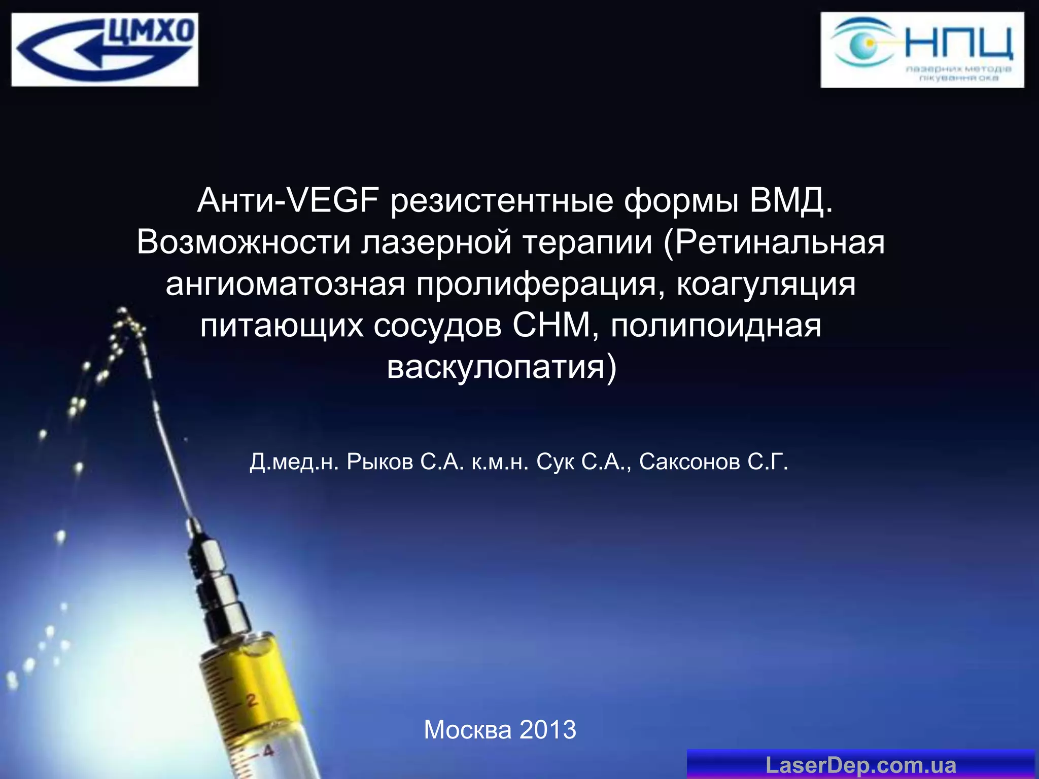 Документ обсуждает анти-VEGF резистентные формы возрастной макулярной дегенерации (ВМД) и возможности лазерной терапии, подчеркивая высокую заболеваемость и слепоту, вызванные ВМД. Описываются типы ответов на лечение и стадии ретинальной ангиоматозной пролиферации, а также методы коррекции, такие как фокальная лазерная коагуляция и фотодинамическая терапия. В заключении отмечается необходимость дальнейшего изучения анти-VEGF подходов и потенциала новых терапий для улучшения зрительных функций.