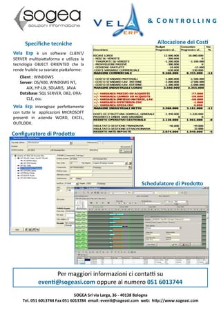Vela ERP è una soluzione software multipiattaforma per la gestione della produzione e il controllo di gestione, adatta a diverse aziende e settori. Offre funzionalità che spaziano dagli acquisti alla logistica, con strumenti di business intelligence per cruscotti aziendali. Si integra con applicazioni Microsoft e supporta diverse tecnologie server e database.