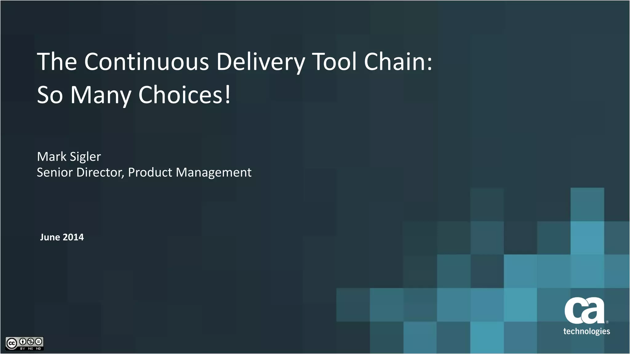 The document discusses the many choices available in selecting tools for continuous delivery workflows. It describes the challenges of complex and dynamic IT environments, including lack of API testing, lack of automated testing, lack of visibility into production applications, and lack of release and environment automation. The document advocates for adopting DevOps practices and selecting the right tools for each job. It provides an example customer case study of a payment services provider that was able to significantly reduce deployment times and eliminate manual mistakes by implementing CA Release Automation.