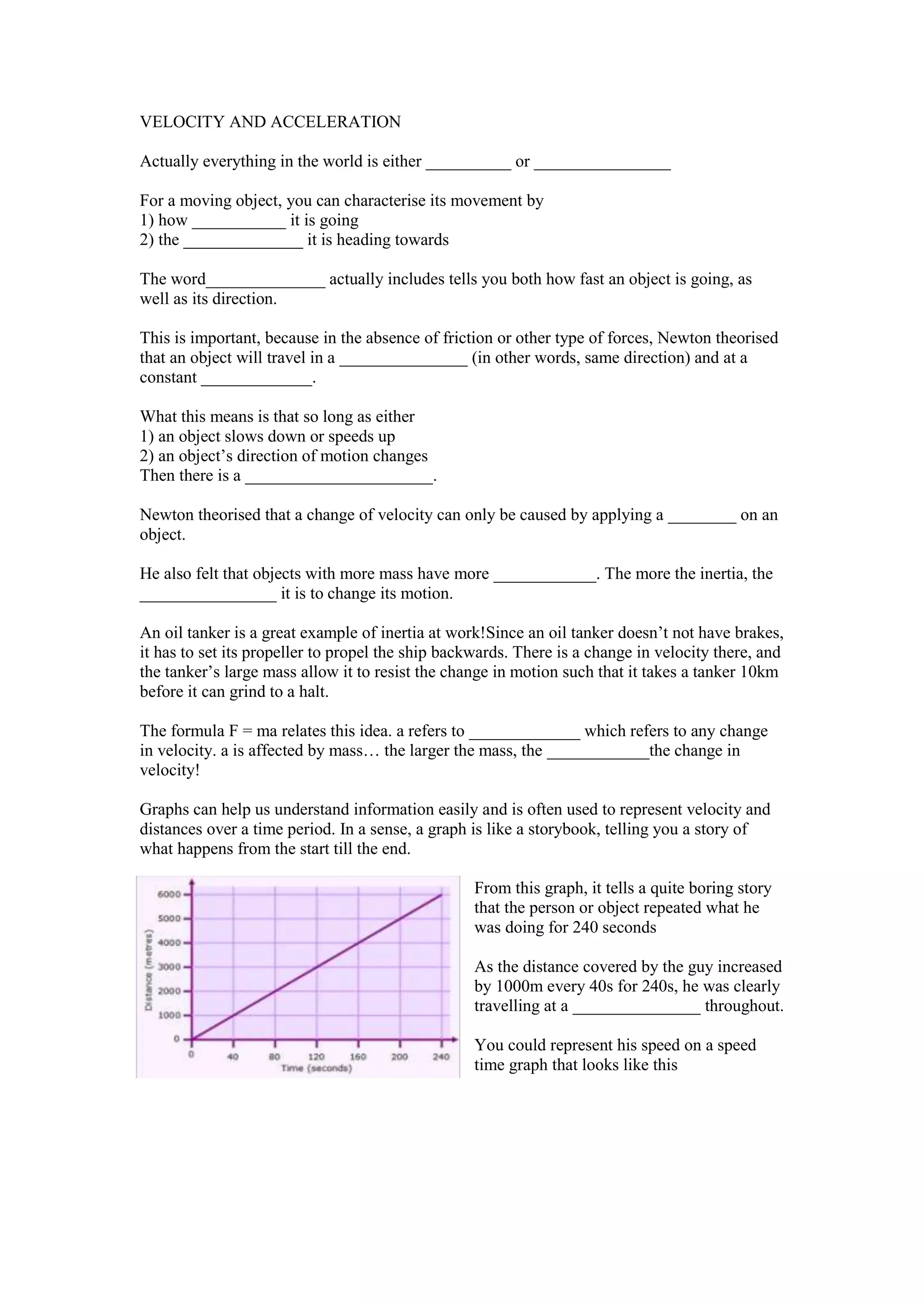 1) Velocity includes both speed and direction of motion. Constant velocity means constant speed in a single direction. Acceleration is a change in velocity caused by applying a force.