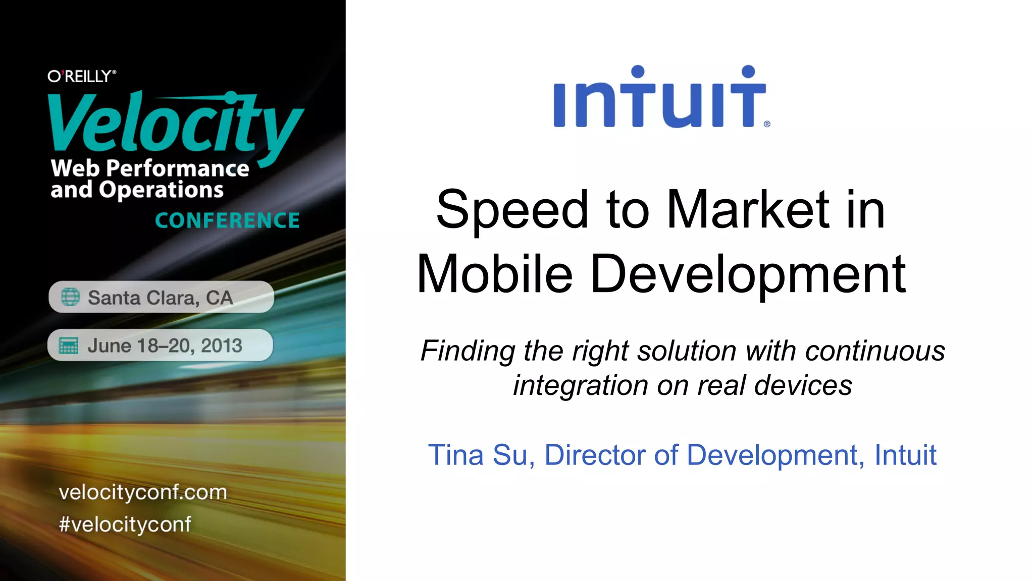 The document discusses the importance of continuous integration (CI) in mobile development to accelerate testing and improve quality, showcasing Intuit's approach to automating the testing of mobile applications on real devices. It outlines the challenges developers face due to a wide variety of platforms, device configurations, and the necessity for quick feedback loops. The presentation emphasizes the effectiveness of Intuit's Virtual Device Lab, allowing for simultaneous testing on multiple devices, ultimately reducing development iteration cycles significantly.