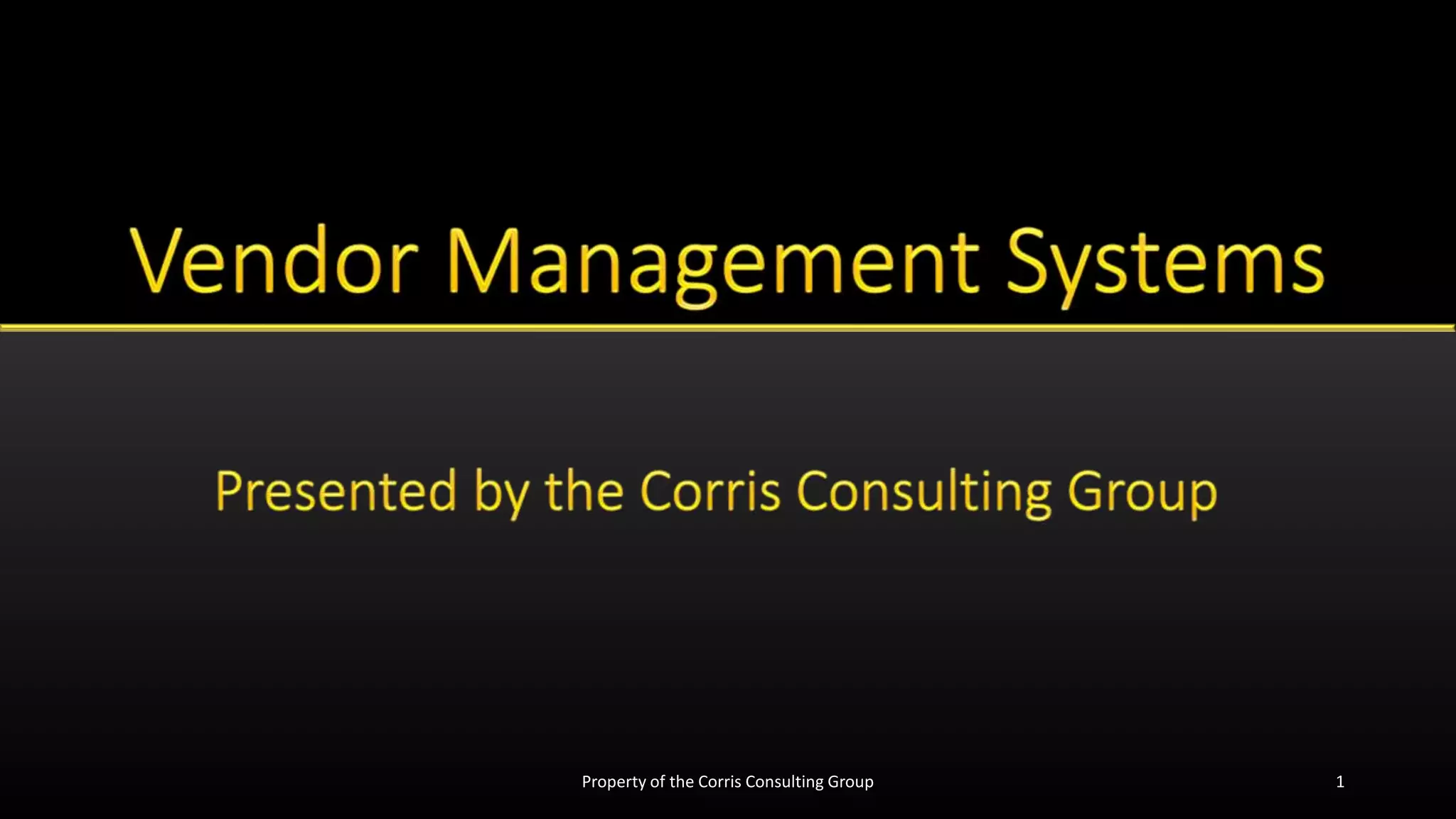 A vendor management system (VMS) allows companies to efficiently manage temporary staffing needs. It facilitates the requisition, procurement, and billing processes for contract workers. The presentation reviews key aspects of how a VMS works, provides value-added enhancements, and discusses industry trends, challenges, cost savings opportunities, and best practices related to vendor management.