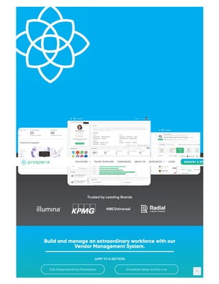 Our contingent workforce solution brings together hiring businesses, talent suppliers, and candidates into a common ecosystem, enabling precise connections, richer insights, lower costs, and faster hiring in a cloud-based Vendor Management System.