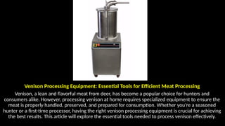 Venison, a lean and flavorful meat from deer, has become a popular choice for hunters and consumers alike. However, processing venison at home requires specialized equipment to ensure the meat is properly handled, preserved, and prepared for consumption.