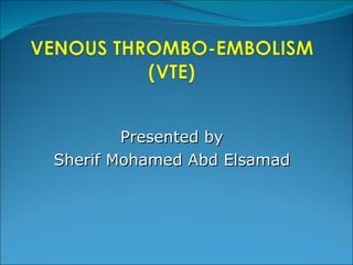VTE refers to deep vein thrombosis and pulmonary embolism, which share common risk factors and pathophysiology. Risk factors include immobilization, recent surgery or trauma, inherited or acquired hypercoagulable states, and certain medical conditions. Signs and symptoms of DVT include leg pain and swelling, while PE presents with dyspnea, chest pain, and potentially hemodynamic instability in severe cases. Diagnosis involves clinical assessment, imaging like ultrasound or CT, and blood tests like D-dimer and Wells criteria. Treatment consists of anticoagulation with heparins or warfarin to prevent clot extension and recurrence.