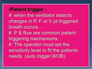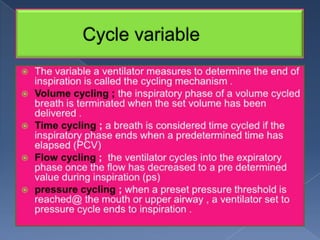 3. Phase variables like trigger, limit, cycle, and baseline determine the beginning, sustaining and ending of each breath phase.