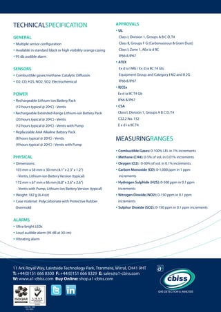 The Ventis MX4 is a portable gas detector that can detect between one and four gases simultaneously, including oxygen, combustible gases, and toxic gases. It has a backlit LCD, audible, visual, and vibrating alarms, and is durable enough for industrial environments. The MX4 is small and lightweight yet capable of detecting multiple gases over long periods from extended battery life or with an optional sampling pump from up to 100 feet away.