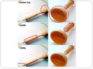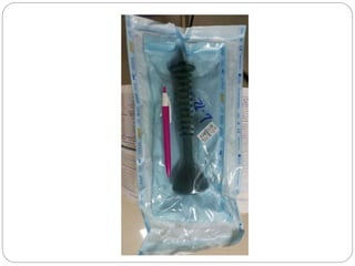 The document discusses the ventouse, an instrument used to assist childbirth by creating a vacuum between a suction cup and the fetal scalp. It describes the parts of the ventouse including soft silicone cups connected by tubing to a hand or electric pump. The document outlines the indications, contraindications, procedures and complications of ventouse delivery. Procedures include applying the cup to the fetal head and creating vacuum before gently tractioning the head during contractions. Potential neonatal complications include scalp abrasions while maternal complications are rare if soft tissues are not entrapped in the cup.