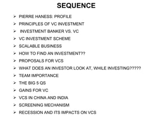 - Venture capitalists are more hands-on than investment bankers, dealing with the human aspects of running a business and providing long-term support. Successful investments have a 10-20-30-40% ratio of future big businesses, failures, average earners, and those that are still uncertain.
