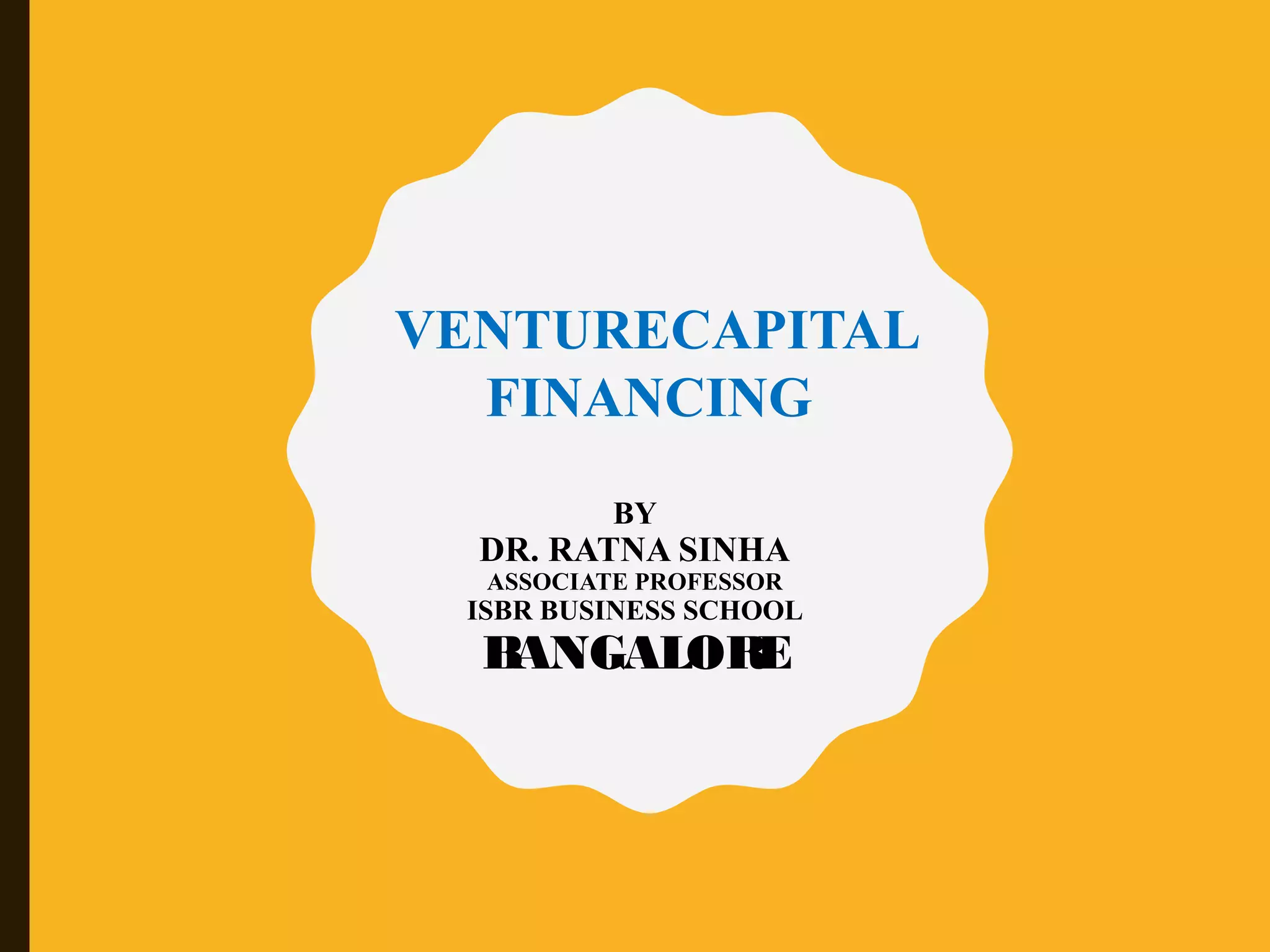 The document provides an overview of venture capital financing, including its definitions, features, characteristics, and stages involved in the financing process. It discusses the evolution of venture capital from the 19th century, its introduction in India in 1987, and various investment methods and regulations. Additionally, it explores the role of venture capitalists, criteria for evaluation, and future prospects in different sectors.