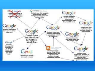 This document discusses how Google Apps tools can be used in education. It provides an overview of Google Apps for Education, which allows schools to manage student and staff accounts under the school's domain. Key Google Apps tools for educational use include Gmail for communication, Google Docs for collaboration, and Google Forms/Sheets for data collection and analysis. Examples are given of how various Google Apps can be embedded in classroom lessons and used for professional development, projects, and administrative tasks. The document advocates for adopting Google Apps to improve access, collaboration, and technology skills among students and staff.