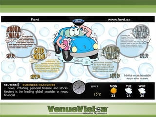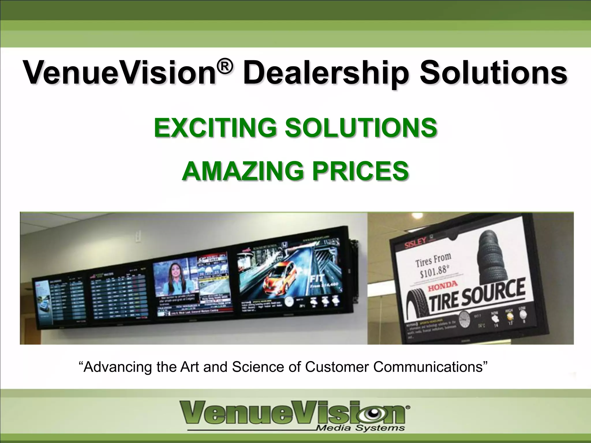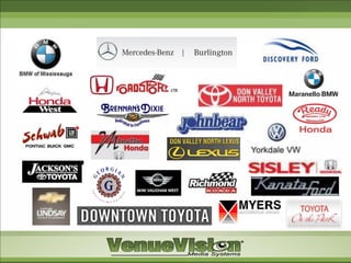 The document discusses VenueVision's dealership solutions including: