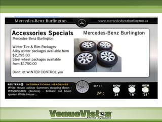 3. The benefits of using media content on displays to maintain branding consistency and increase sales of accessories, services, and financial products while enhancing the customer experience.
