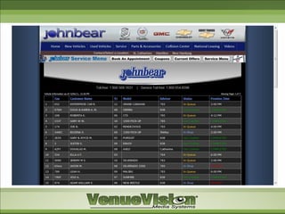 1. Integrated digital signage and display solutions to provide customers information on vehicle service status both in the dealership and online.
