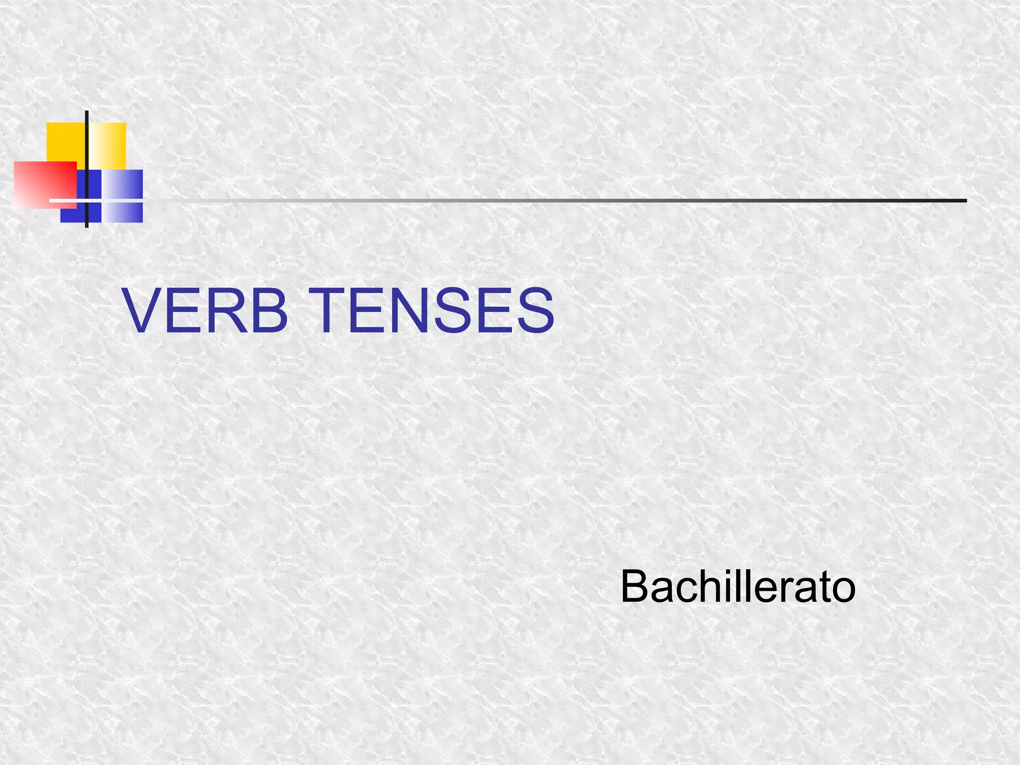 The document discusses verb tenses in English, including:
