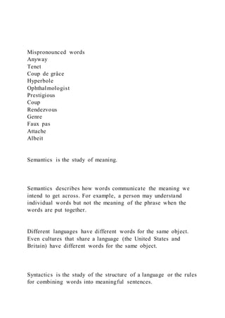 The document discusses key elements of verbal communication in linguistics, including phonology, semantics, syntactics, and pragmatics, emphasizing the importance of context and cultural nuances in communication. It also addresses challenges faced by individuals in professional settings, using case studies to explore issues of motivation, ethics, and research methods. Additionally, it highlights the differences between quantitative and qualitative research, providing insights into their respective methodologies and limitations.