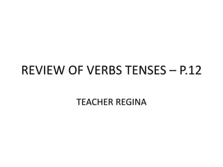 The document reviews verb tenses in English, including the simple present, present continuous, past continuous, and simple past tenses. It provides examples of forming affirmative, negative, and interrogative sentences in each tense. For the simple present and past tenses, it discusses regular and irregular verb forms. Key uses of each tense are also outlined, such as using the simple present for daily habits and the present continuous for ongoing actions.