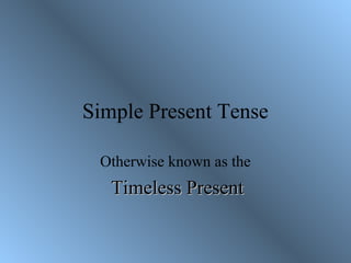The document provides an overview of English verb tenses and aspects. It discusses the simple present, past, and future tenses, as well as the present perfect, present progressive, and other combinations of tenses including the past perfect, future perfect, and future progressive. Each tense is defined by its uses and examples are provided of forms and timelines to illustrate when each tense is applied.