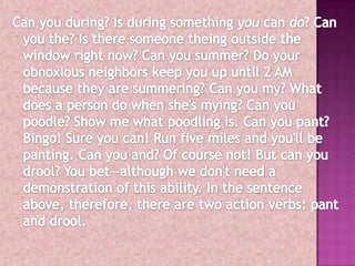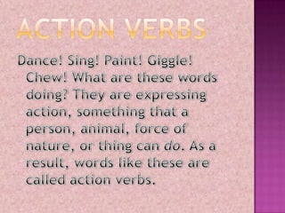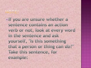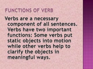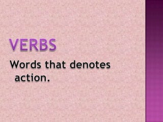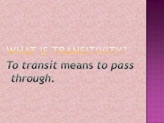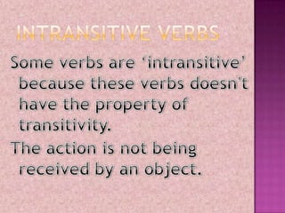 The document outlines the learning objectives and lesson plan for a class on verbs. The lesson plan includes defining verbs, identifying the two main types of verbs, differentiating between transitive and intransitive verbs, and exercises for students to practice the concepts. The exercises focus on identifying verbs and whether they are being used transitively or intransitively in sample sentences.