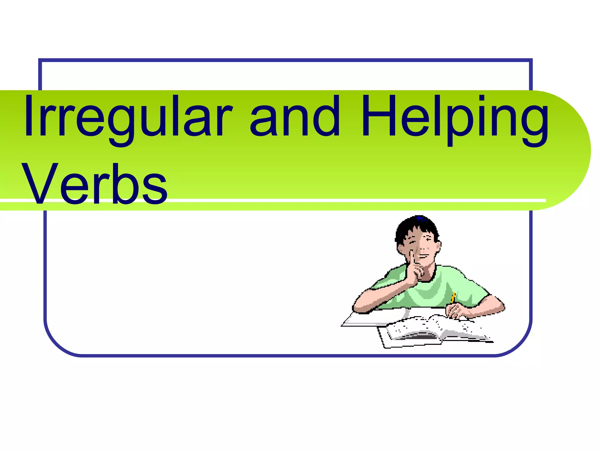 The document lists common irregular verbs and their present, past, and past participle forms. It also notes that past participles require helping verbs like "have", "has", "had", "do", "does", "did" to be used properly in sentences. Some examples of irregular verbs and their forms provided are: blow - blew - blown, break - broke - broken, catch - caught - caught.
