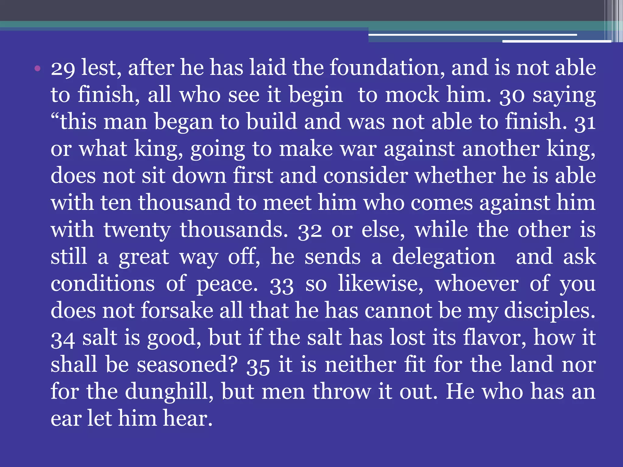 3. Becoming a disciple requires careful consideration, as in building a tower or going to war, to count the full cost and ensure one is able to finish.