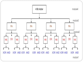 The document provides an overview of digital design methodologies, highlighting the differences between C/C++ and hardware description languages (HDLs) like Verilog. It discusses important rules for designing digital circuits, types of methodologies (bottom-up and top-down), and essential Verilog concepts such as modules, parameters, and data types. The document emphasizes the significance of using HDLs for describing hardware at various abstraction levels, facilitating design reusability and verification.