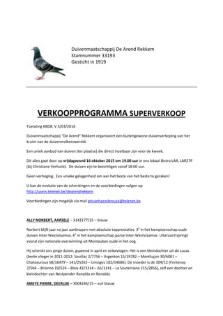 (bij Christiane Verhulst). De duiven zijn te bezichtigen vanaf 18.00 uur.