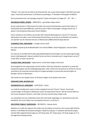 “Ameye”: een naamals een klok in de duivenwereld. Jaar na jaar bij de toppers. Ook 2015 was weer