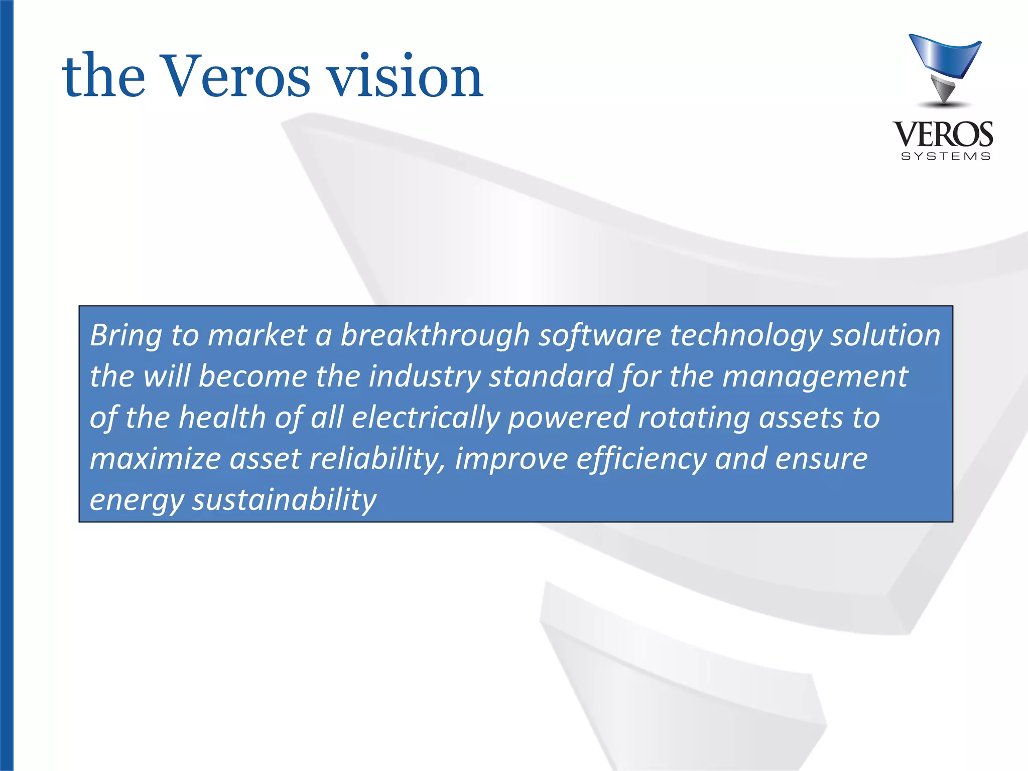 The Veros System provides a breakthrough software solution that uses non-invasive monitors to continuously monitor electrically powered rotating assets. It analyzes electrical waveform data using predictive analytics to detect emerging problems early, maximize asset reliability, improve efficiency, and ensure energy sustainability. Less than 1% of assets are currently continuously monitored, but the Veros System provides an affordable, easy to deploy solution to monitor the overwhelming majority of critical assets for the first time.