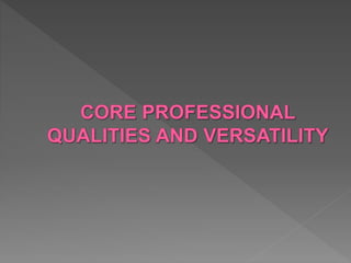 The document discusses the importance of versatility for professionals. It defines versatility as the ability to adapt to different tasks and fields of work. It notes that versatility helps professionals reinvent themselves when their skills are no longer needed, such as due to automation or changes in their industry. The document provides many examples of ways for professionals to develop versatility, such as learning new skills, taking on different roles, and staying aware of changes in their field. It emphasizes developing a strong professional core and the ability to handle uncertainty.