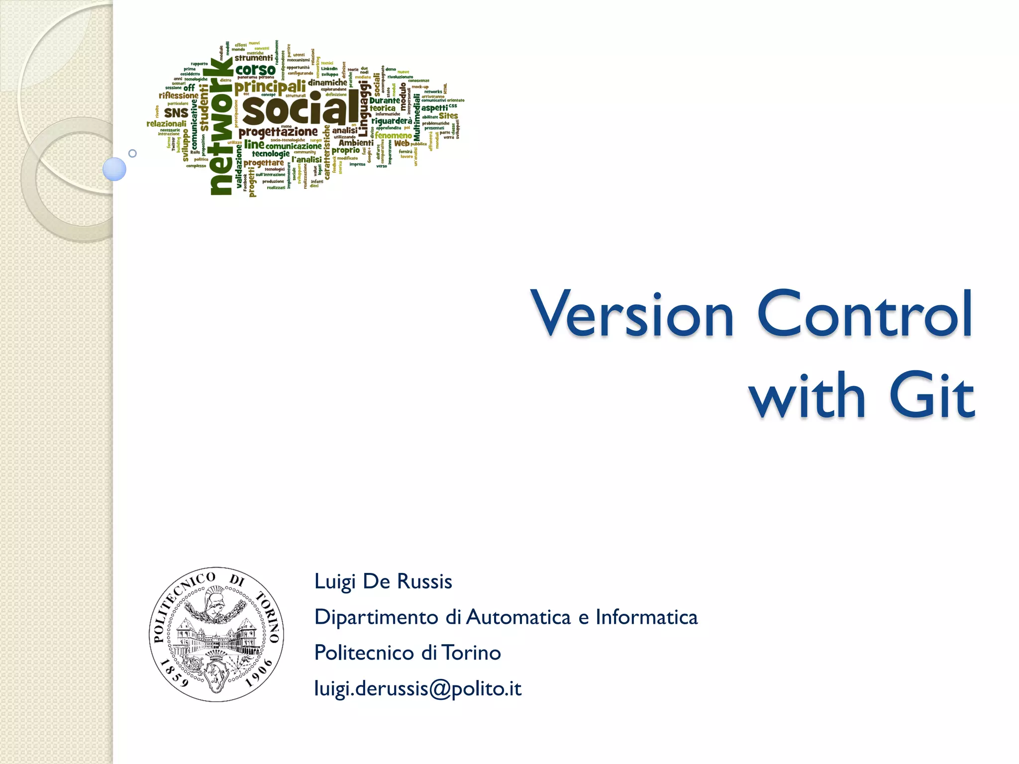 This document provides an overview of version control using Git, highlighting key concepts such as repositories, working copies, commits, and updates. It discusses scenarios for solo and team-based work, outlining the importance of backup, version management, and collaborative conventions. The text also illustrates practical examples of using Git commands for version control, including cloning, committing, pushing, and handling conflicts.