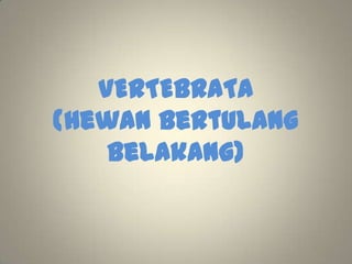 Dokumen ini membahas tentang kelas-kelas hewan vertebrata (bertulang belakang) yaitu ikan (Pisces), amfibi (Amphibia), reptil (Reptilia), burung (Aves), dan mamalia (Mammalia). Setiap kelas memiliki ciri khas tersendiri seperti sistem pernapasan, suhu tubuh, dan lainnya. Kelima kelas vertebrata ini memiliki peran penting bagi kehidupan manusia.